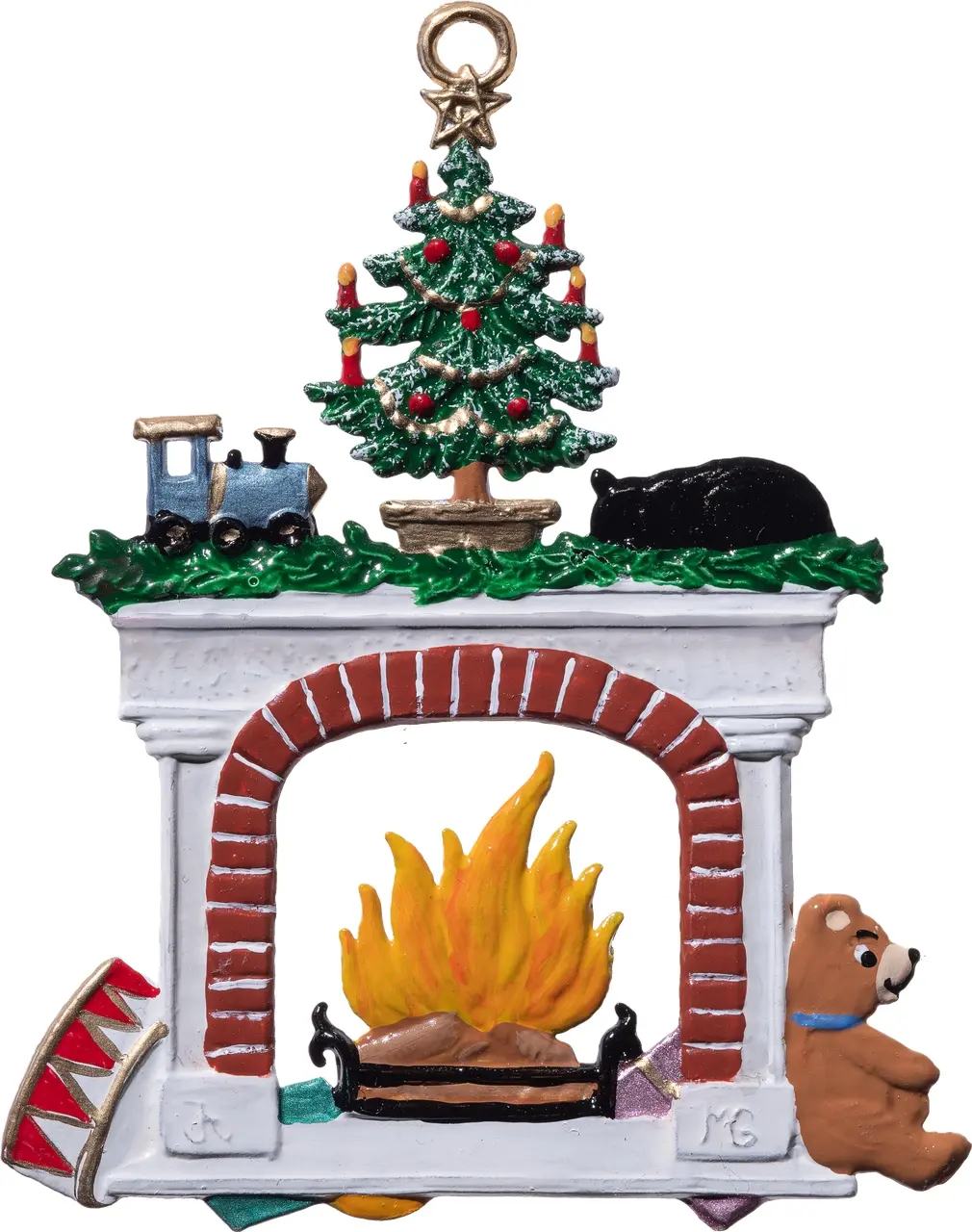 Verleihen Sie Ihrem Weihnachtsbaum einen Hauch von Gemütlichkeit mit diesem charmanten Baumanhänger. Er stellt eine idyllische Winterszene dar, die an kühle Tage am wärmenden Feuer erinnert. Ein detailreich gestalteter Kamin, über welchem sich eine festlich dekorierte Tanne erhebt, ist umgeben von einer schlafenden Katze, einem neugierigen Teddybären und liebevoll platzierten Geschenken. Ein Stück, das die Herzen bei jedem Fest höherschlagen lässt und die Magie der Feiertage in Ihr Zuhause bringt. Ideal für Sammler und als zauberhaftes Geschenk.