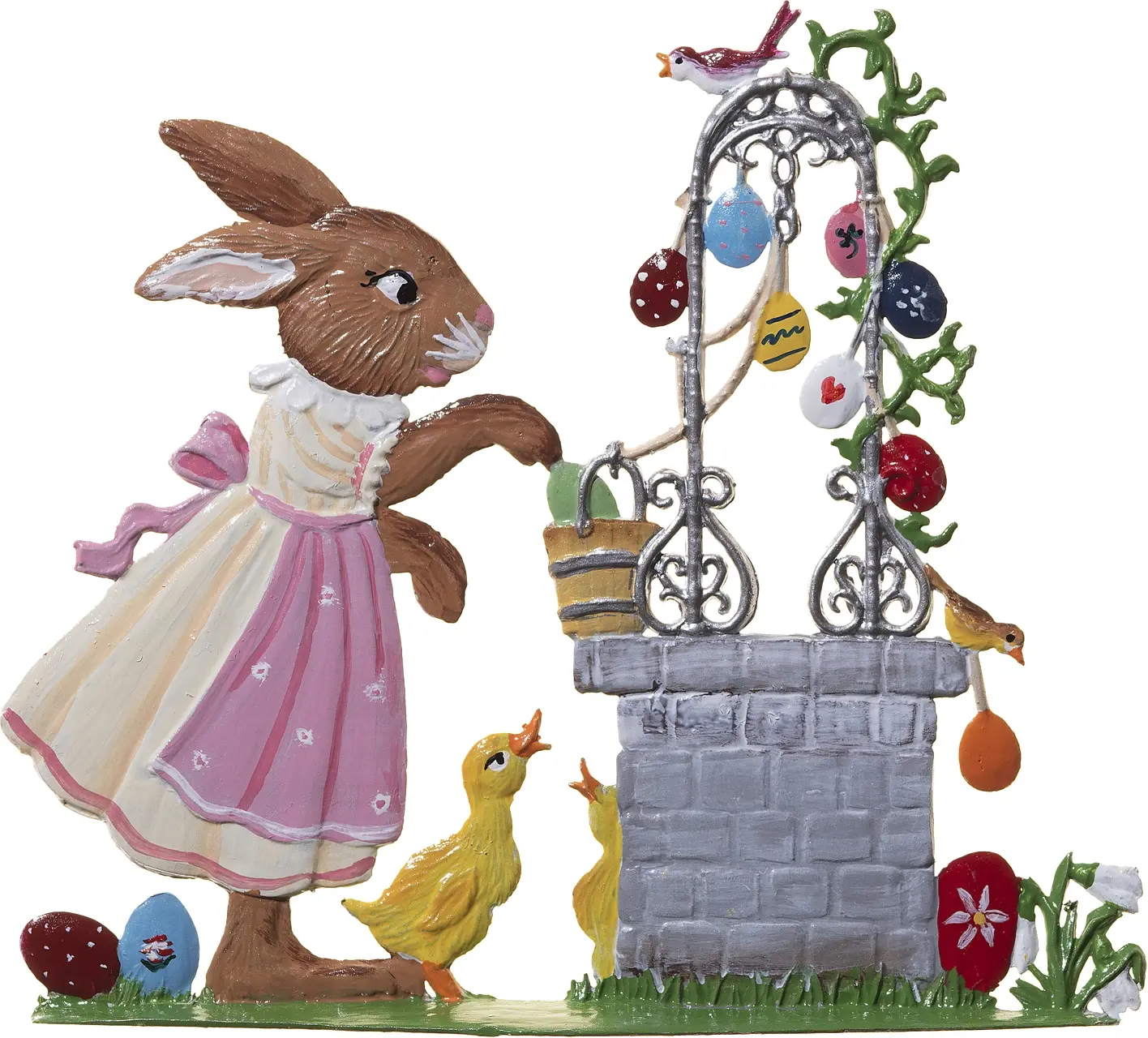 10 x 9 cmErwecken Sie mit dieser entzückenden Zinnfigur die Magie des Frühlings in Ihrem Zuhause zum Leben! In liebevoller Handarbeit gestaltet, zeigt diese Szenerie eines Hasen beim Schmücken eines traditionellen Osterbrunnens, umgeben von neugierigen Küken und farbenfroh verzierten Eiern. Die liebevollen Details und die lebendige Ausstrahlung dieser Dekoration laden zum Träumen von warmen Frühlingstagen und fröhlichen Osterfesten ein. Ein perfekter Blickfang für jede Sammlung und ein herzliches Geschenk für Liebhaber des Osterfestes!