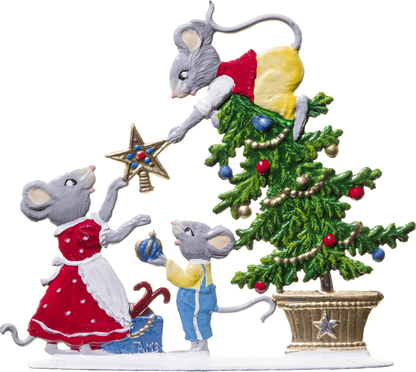 6 x 7 cmBezaubern Sie Ihr Zuhause mit dieser entzückenden Darstellung familiärer Harmonie und festlicher Vorfreude! Drei charmante Nager haben sich versammelt, um einen kleinen immergrünen Baum in ein funkelndes Kunstwerk zu verwandeln. Mit liebevollen Details ausgearbeitet, fangen sie die Magie der Vorbereitungen auf besondere Moments ein. Diese charmante Szene wird gewiss ein Lächeln auf die Gesichter der Betrachter zaubern und eine einzigartige Wärme in jeden Raum bringen. Ideal geeignet, um die Ecke eines Bücherregals oder die festliche Tafel zu schmücken.