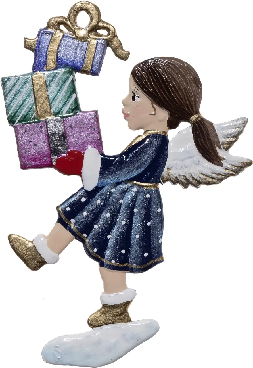 6 x 4 cmBringen Sie himmlische Freude in Ihr Zuhause mit dieser entzückenden Figur, die Freude und festliche Stimmung verbreitet. Meisterhaft handbemalt und mit präzisem Detailreichtum gefertigt, trägt diese himmlische Gestalt Freude in Form von liebevoll gestalteten Geschenken. Ein ideales Dekor für Jahresendfeiern oder als zeitloses Geschenk. Ihr Zuhause wird mit einem Hauch von Eleganz und festlicher Magie erleuchtet, wann immer Sie diese feine Kunstfigur betrachten. Festlich und doch sanft – ein wahrer Schatz für jede Sammlung. Ideal für das Sammeln, Verschenken oder als Blickfang an Ihrem Weihnachtsbaum.